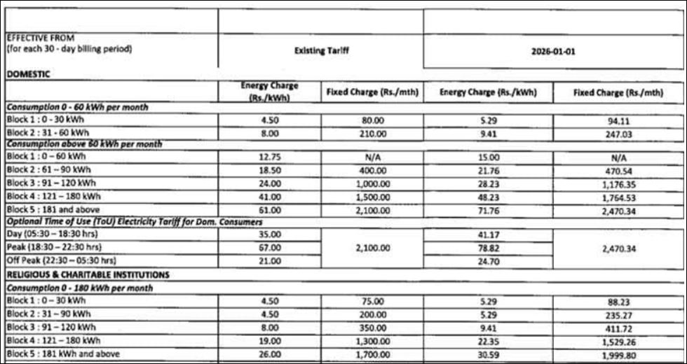 ஆண்டின் முதல் காலாண்டிற்கு 11.57 சதவீத மின் கட்டண அதிகரிப்புக்கான யோசனையை இலங்கை மின்சார சபை முன்மொழிந்துள்ளதாக கூறப்படுகின்றது.